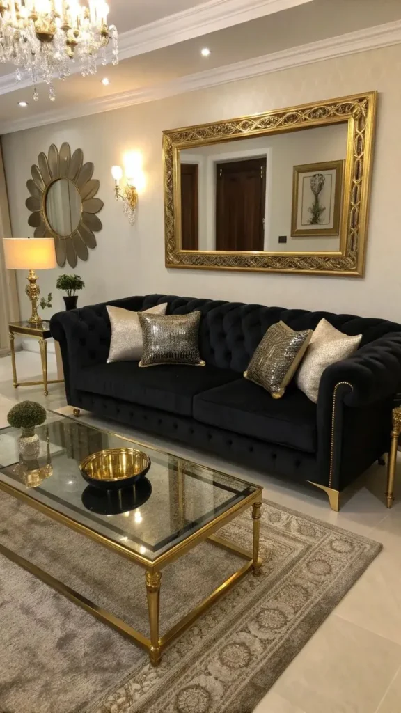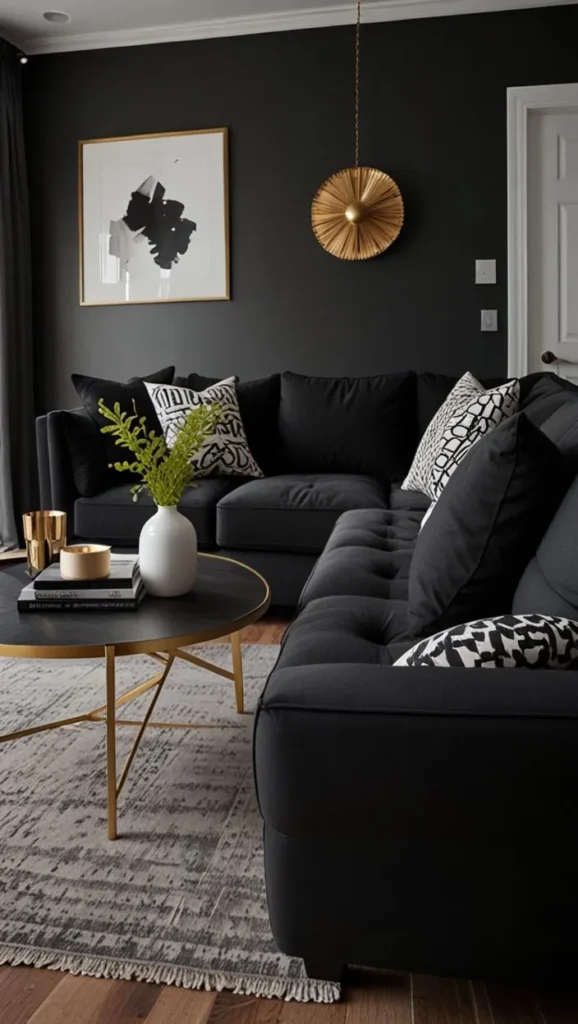 | Black + Burgundy/Mustard | Rich, dramatic, layered | Bold statement living rooms |