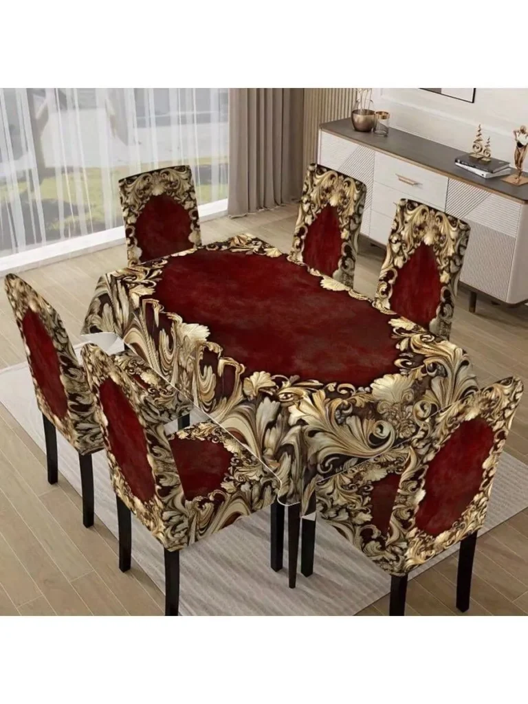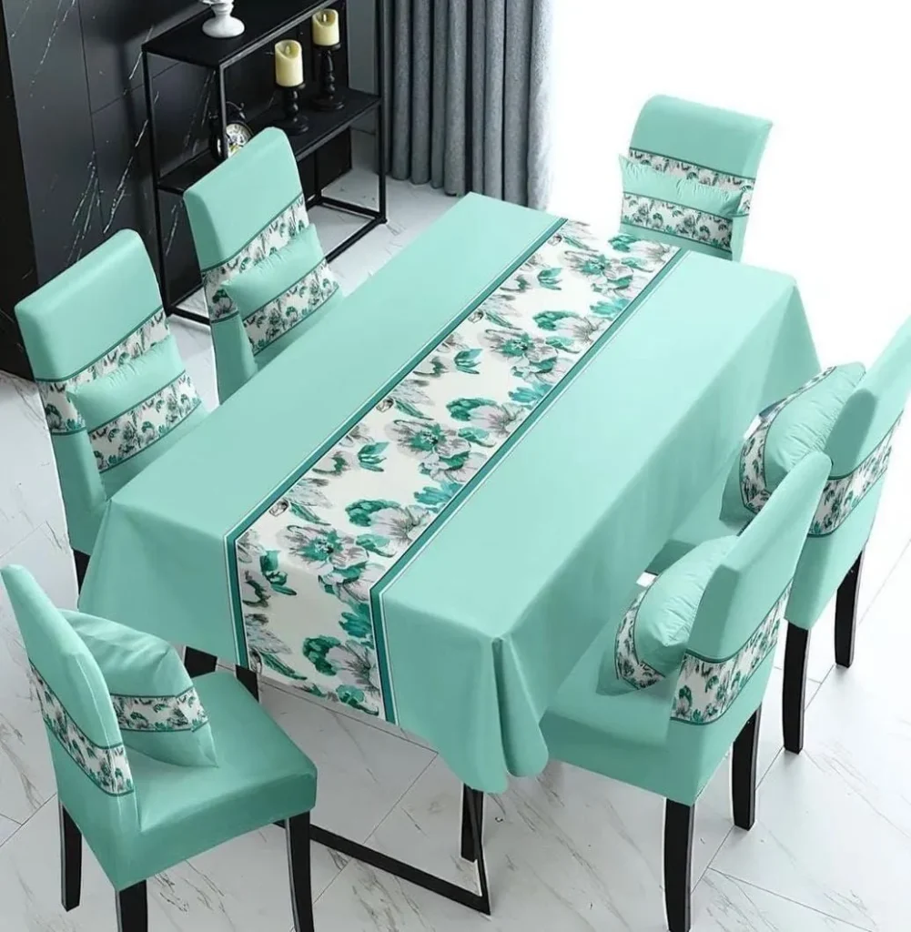 Patterned covers add energy, rhythm, and personality. They can be used to make a dining room feel seasonal, lively, or more expressive.
