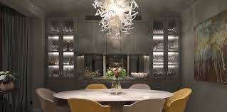 A combination of a main chandelier or pendant, recessed ambient lighting, and dimmable accent fixtures. This layered approach gives flexibility and beauty.