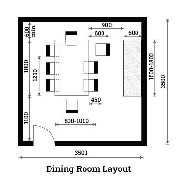 These measurements are not rigid rules. They are practical starting points. The exact fit depends on chair width, the design of the table base, apron clearance, overhang, and how much walking space the room allows.