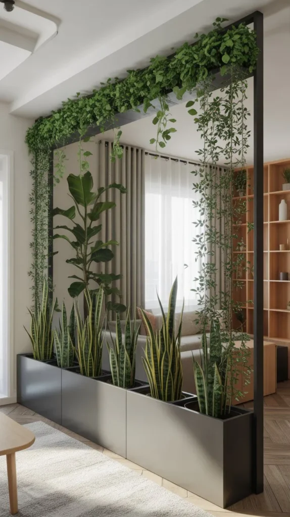 Living rooms often need the most creative partitioning because they frequently serve multiple functions. A living room may also need to hold a dining area, entry point, reading area, or home office corner. In this setting, the partition should help define zones while still keeping the room open and connected.