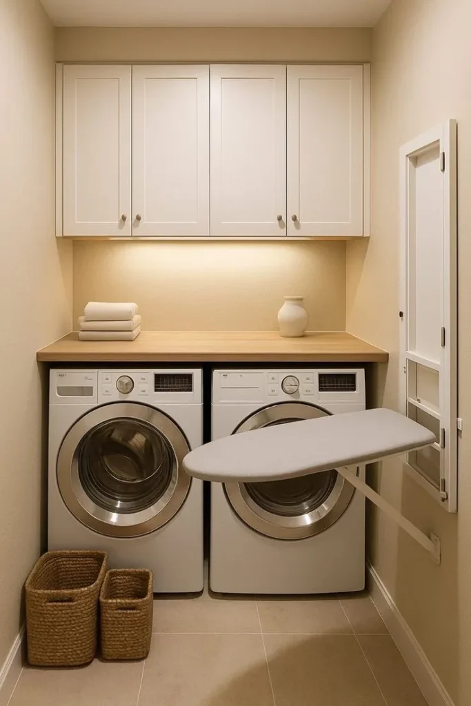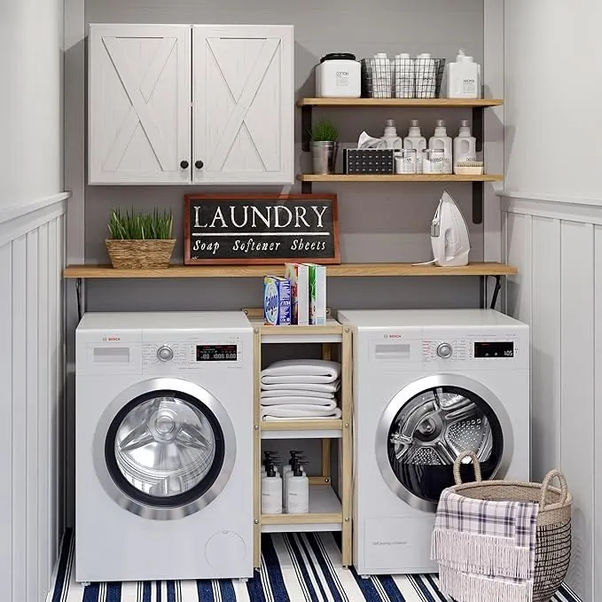This vertical strategy offers several advantages. In small laundry rooms, it keeps the floor clear, making the space feel larger and easier to navigate. In larger rooms, it creates a Cohesive and built-in appearance while improving accessibility.